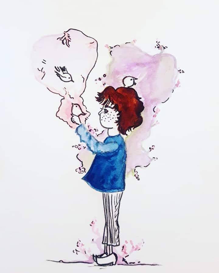 « Je peux partir du langage intérieur de mon être que je vais poétiser dans la peinture ou l’illustration. Par exemple un soupir, une prière, un souhait, un rêve, des souvenirs, des promesses divines… »
